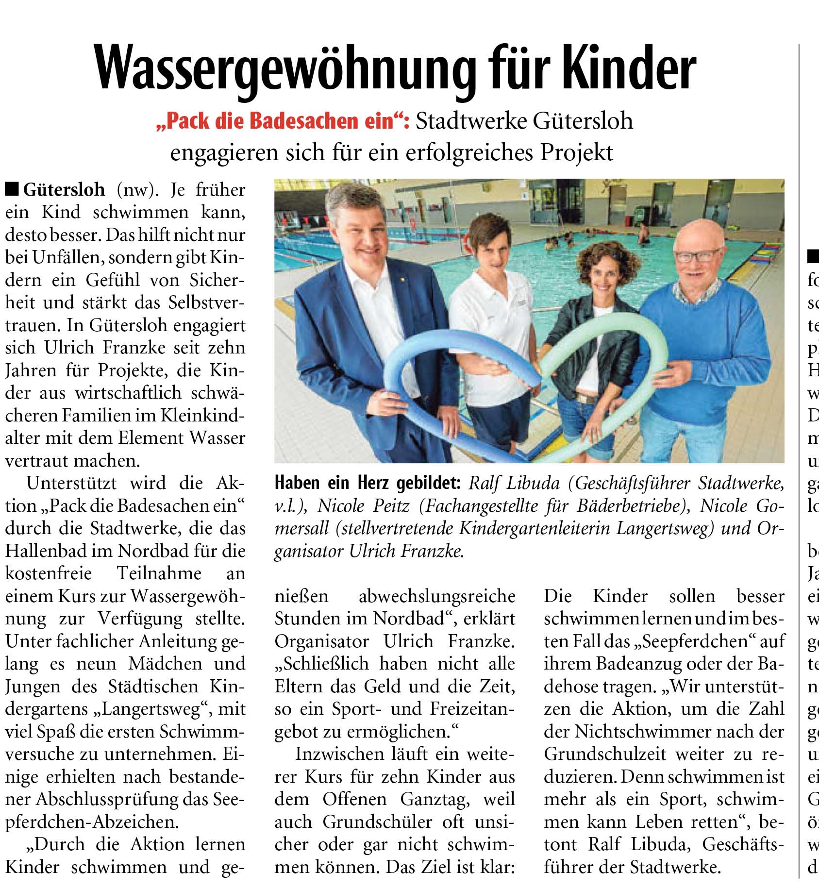 Gütersloh: Wassergewöhnung für Kinder (Neue Westfälische, 06.05.2019)