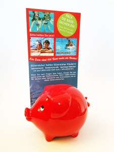Unsere Spenden-Sparschweine werden jedes Jahr auch an Unternehmen und Privatpersonen verteilt. Ob die Sparbüxe auf einer runden Geburtstagsfeier aufgestellt wird oder am Empfangsbereich einer Firma: Jeder Euro, der ins Sparschwein wandert, hilft!
